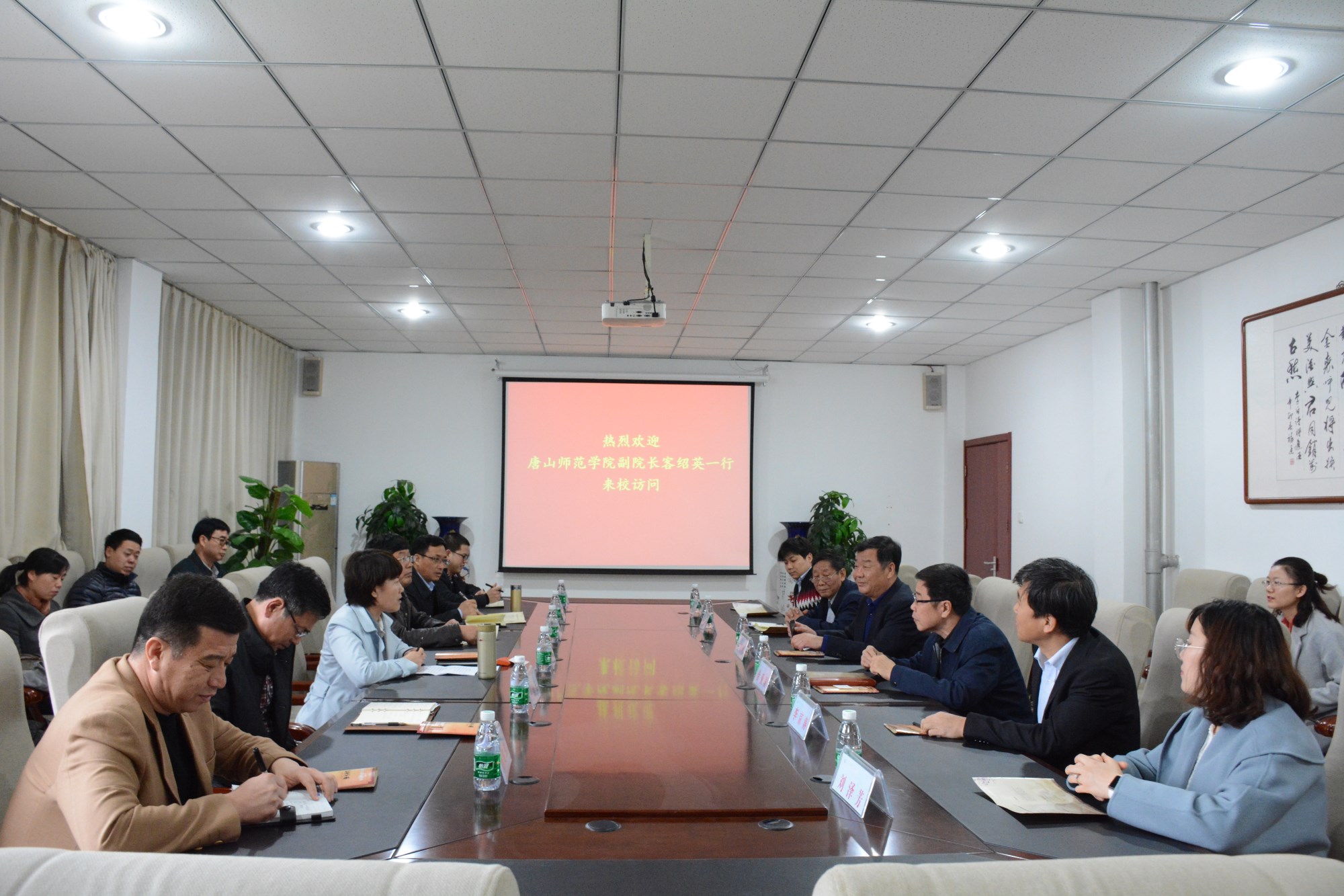 4月3日上午,唐山师范学院副院长客绍英率队,带领图书馆、国有资产设备处一行11人来必赢官网参观访问。院长王化深、副院长张乐乐、副院长徐爱国出席交流会,必赢官网相关单位负责人员参加会议。