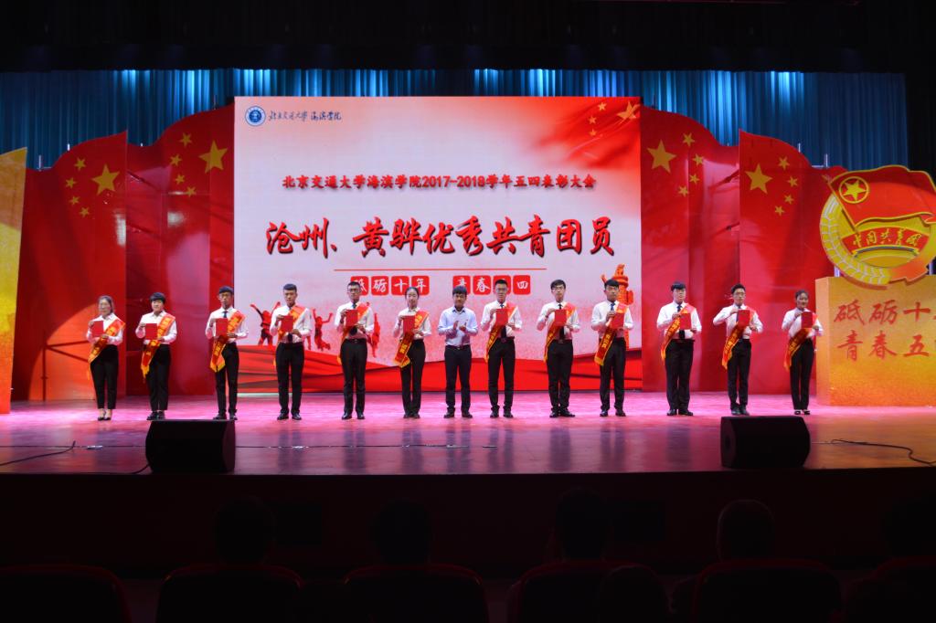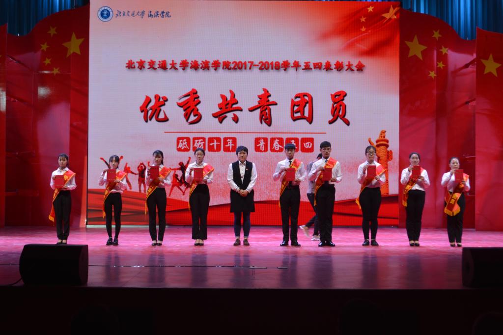 学生处处长、校团委书记黄璐璐为获得2017-2018学年北京交通大学海滨学院“优秀共青团员”代表颁奖