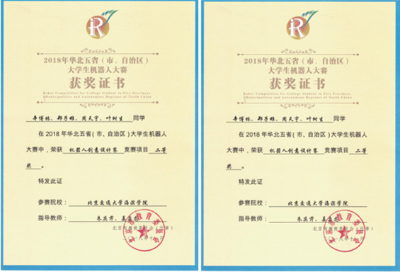 11月9-11日,第六届华北五省(市、自治区)大学生机器人大赛在京举行,北京大学、北京工业大学等87所高校近800支队伍参与其中。经过为期三天的激烈角逐,必赢官网老师朱庆芹、姜启龙带领的ET机器人工作室成员辛博林、郑子雄、周天宇、叶树生四位同学在机器人创意设计赛中喜获二等奖,在作品技术水平和实践创新能力上得到了在场所有人的充分认可和肯定。