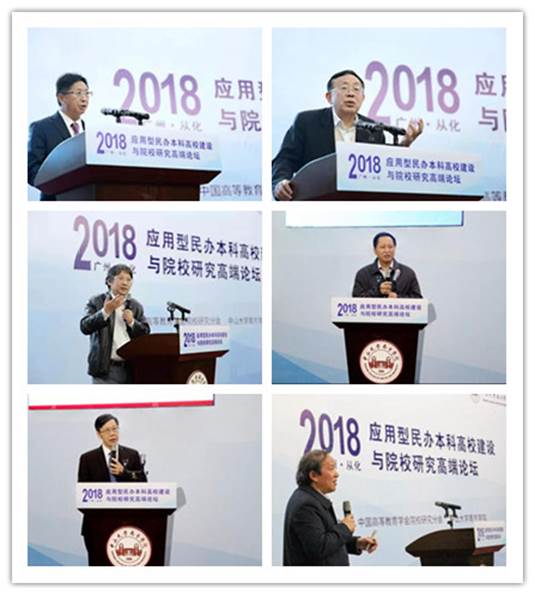 本次会议以“应用型民办本科高校建设与院校研究”为主题,特邀中国高等教育学会院校研究分会会长、华中科技大学学术委员会副主任、文华学院校长刘献君、教育部学校规划建设发展中心主任陈锋、广东省教育厅原厅长罗伟其、中山大学南方学院校长喻世友、副校长黄静波、中国高等教育学会院校研究分会副会长、厦门大学教育科学研究院院长别敦荣上台致辞并作大会报告。参会代表共同对民办本科教育、民办高校转型升级发展的必要性、主要任务和路径等重大课题进行了广泛而深入的探讨,对推动民办本科高校应用型转型发展,促进高校“冲一流、补短板、强特色”,实现内涵式发展,更好地肩负起培养人才、创新科技、服务社会的重要使命与责任这一重要任务深表认同,于此同时六场精彩纷呈的教授报告也引起了与会人员的热烈反响与认同。