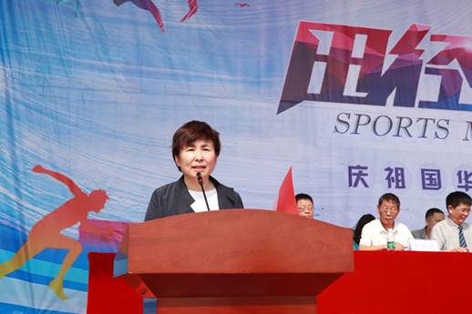 黄骅市政府副市长张桂云致辞,她首先对海滨学院第十一届田径运动会的隆重开幕表示热烈祝贺;其次正值庆祝祖国七十华诞、纪念五四运动100周年之际,向必赢官网学生和教职工致以亲切的问候和美好的祝愿;最后表示必赢官网全面落实全民健身国家战略,积极弘扬健康向上的体育理念,大力营造全民运动的良好氛围,希望全体师生以此次运动会为载体,团结协作、顽强拼搏,牢记时代使命,用青春和汗水点亮人生的梦想。