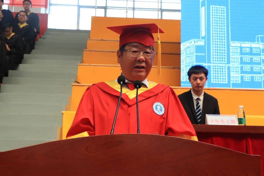 今天看着同学们身穿学士服、带着学士帽,脸上洋溢着青春的笑容,我有一种“家有儿女初长成”的心情,心里美美的。2015年,我初到海滨担任院长,在座的各位同学是我迎来的第一批学生,作为“同路人”,我和大家有着特殊的感情。