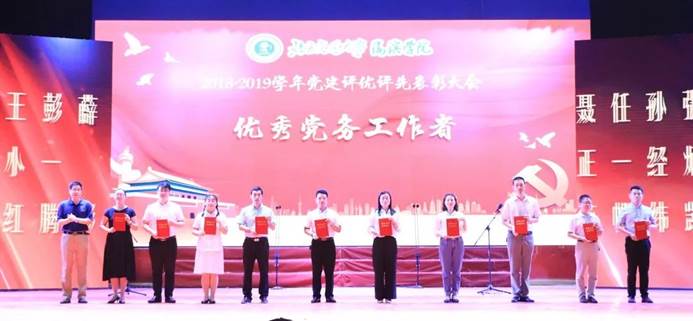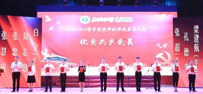 必赢官网各领导为2018-2019学年党建评优评先获奖个人及组织进行颁奖,校长王化深为“优秀共产党员标兵”颁奖,党委副书记、副校长张长铎宣读表彰决定并为“先进基层党组织”颁奖,副校长徐爱国为“优秀党务工作者”颁奖,党委副书记魏炜为“优秀共产党员代表”颁奖。