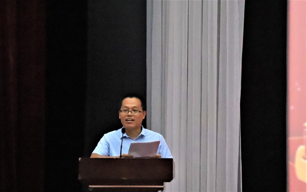 “2019年度河北师德标兵” 获奖教师代表--土木建筑工程学院教师时国松上台发言,他以诙谐幽默的话语讲述了自己是如何克服备课的疲劳和调动学生课堂上的积极性的独到方法,希望与在座教师共勉,互帮互助。