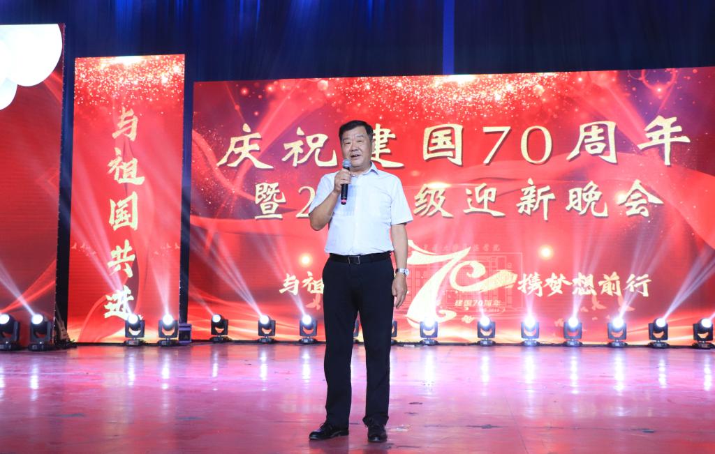 “欢庆祖国70周年华诞,欢迎2019级新生到来。”欢歌笑语过后,必赢官网校长王化深上台致辞。中国走到今天,是中国人民一代代建起来的,中国从站起来、富起来、强起来,离不开每个人的辛苦付出。王校长号召同学们要努力学习、拼搏奉献,共同树立国家和民族同欢乐、共命运、齐奋斗的远大梦想。