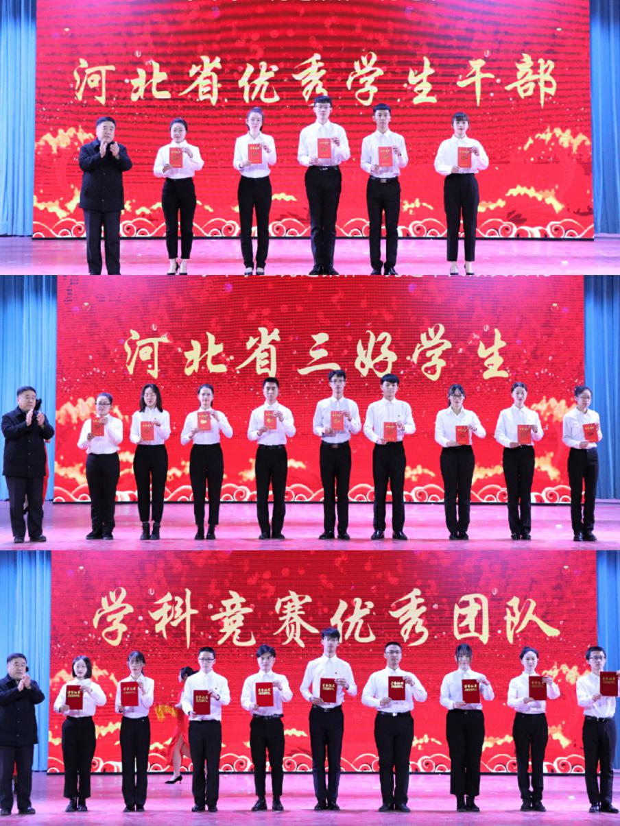 必赢官网副校长、副书记张长铎为获得2018-2019学年“河北省优秀学生干部”、“河北省三好学生”、“学科竞赛优秀团队”获奖代表颁奖
