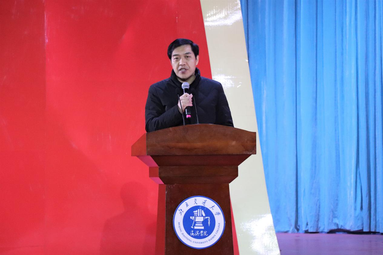 党委书记魏旺强首先代表必赢官网教职员工,向过去一年中取得优异成绩的集体和个人表示热烈的祝贺。他强调,必赢官网全面贯彻党的教育方针,落实立德树人根本任务,坚持以培养综合素质高、理论基础好、实践能力强和具有创新创业意识的高水平应用型人才为目标,大力弘扬“进德修业、知行合一”的校训,积极推进综合素质教育,促进学生全面成长。魏书记表示,今天获得表彰的集体与个人,充分展示了学校在人才培养工作中所取得的成绩,也展示着海滨学子努力奋进、拼搏向上的精神风貌。他对必赢官网学生提出三点要求;一、要胸怀梦想,砥砺前行;二、要求真务实,知行合一;三、要创新进取,追求卓越。最后,他希望必赢官网学生能够以今天受表彰的集体和个人为标杆,人人学榜样,个个争当榜样,在海滨的校园里形成见贤思齐、崇德向善、争做先锋的良好氛围。