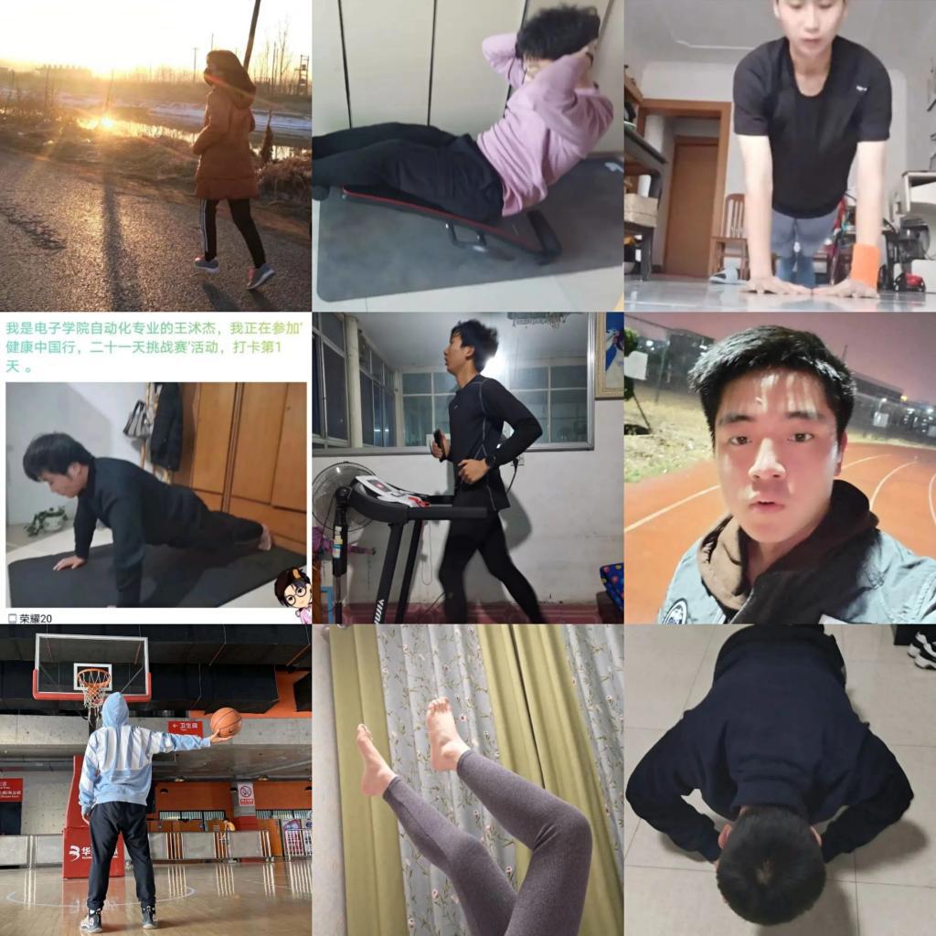 活动一经推出就受到了同学们的广泛欢迎和积极参与,居家运动锻炼的热情日渐高涨。本次打卡活动依托微信群、QQ群、公众号等新媒体平台,各院系学生自行下载运动应用软件,自由选择健身课程,通过每天发布健身视频或者运动记录完成打卡,工作人员定期核对同学们的打卡信息,简单的运动将远在全国各地同学们的心慢慢汇集在一起。