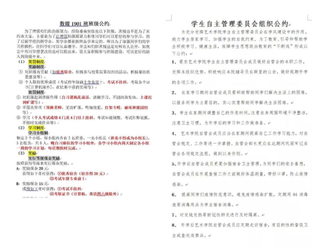 艺术学院各学生组织、各专业班级通过视频会议的方式开展此次活动,对疫情期间的各项工作做出部署与强调,并制定切合本组织、本班级实际情况的公约,助力学生养成良好的习惯,形成良好的学风。