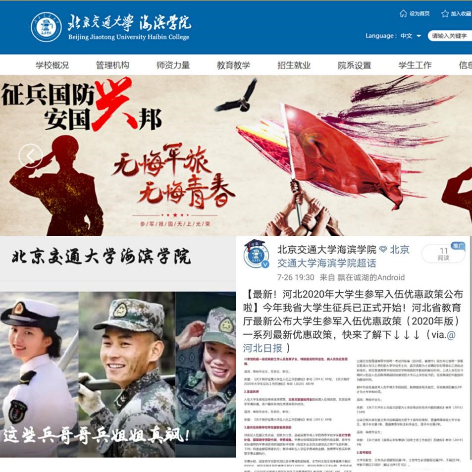 青春不一样,热血筑国防。必赢官网结合今年征兵工作的特点,借助网络信息化平台优势,通过学校官网、微信公众号、官方微博等新媒体平台,将征兵工作通知及相关政策向全校学生进行专题推送宣传,实时更新征兵新动向、普及征兵知识、讲解征兵流程,积极开展形式多样的“线上”征兵宣传活动,提升学子参军热情。
