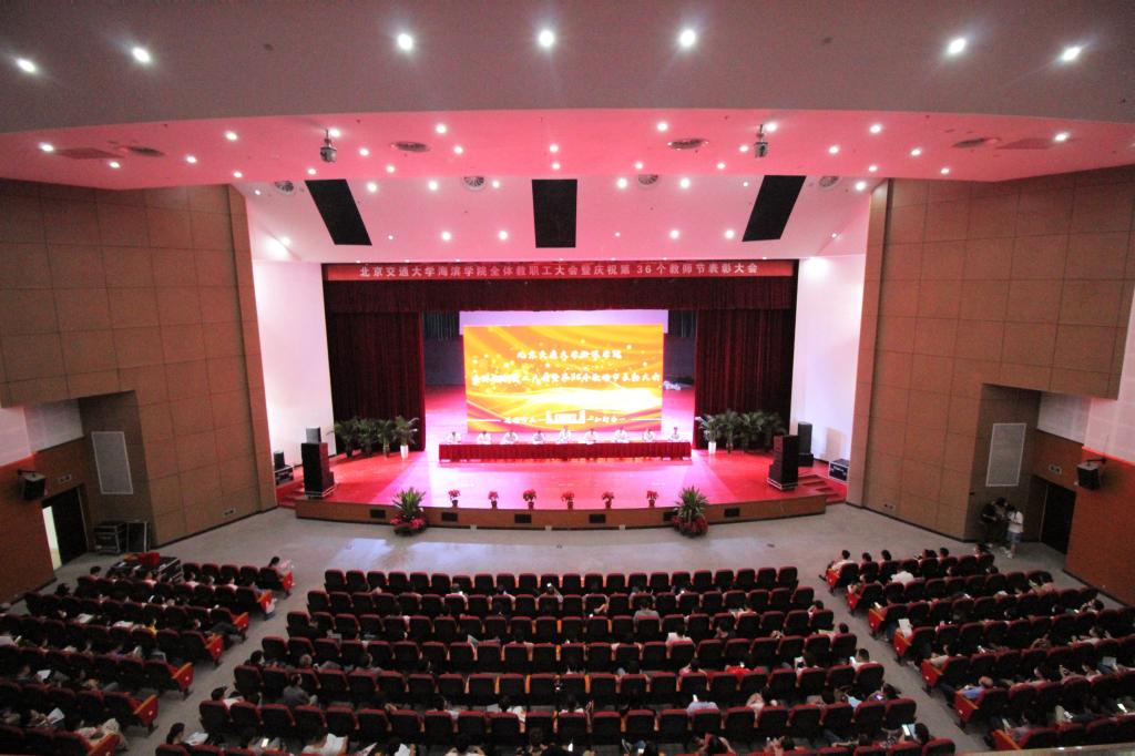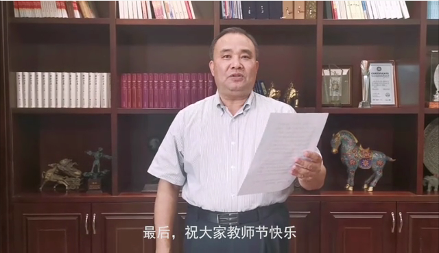 校长王化深代表学校领导祝辛勤工作的教职工们教师节快乐,并对大家在各自岗位上奋勇担当表示感谢。王校长对做好本学期学校重点工作和学院发展规划提出要求。随后王校长用饱含深情的语言鼓舞全体教职员工的士气,希望在大家的共同努力下,把海滨学院建设得更加有特色、有水平、有内涵,号召大家携手共创海滨学院美好未来。